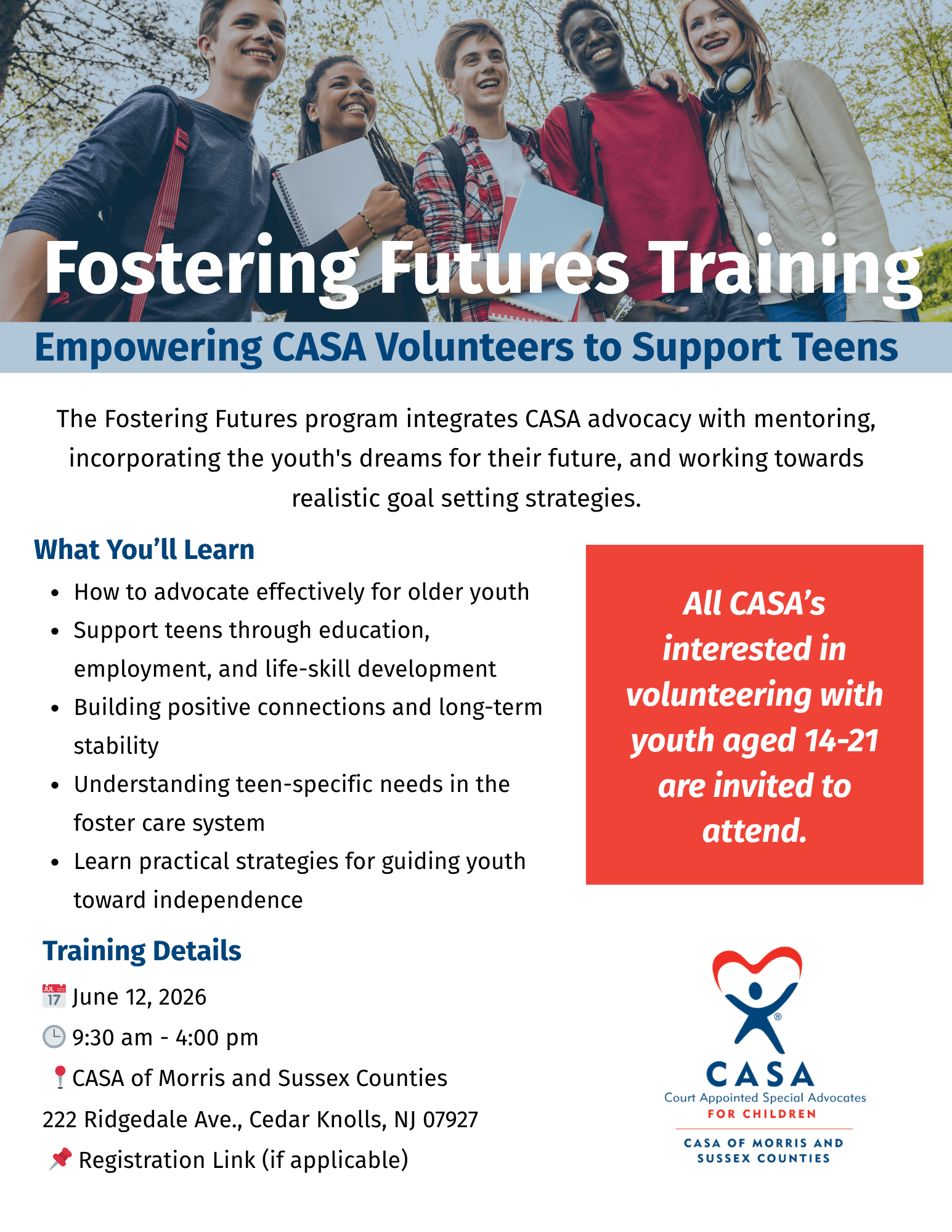 The Fostering Futures program integrates CASA advocacy with mentoring, incorporating the youth's dreams for their future, and working towards realistic goal setting strategies.